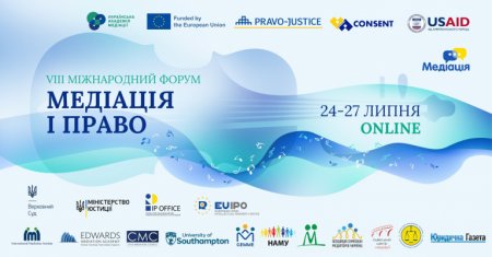 Українська академія медіації / Ukrainian Academy of Mediation за підтримки Програми USAID «Справедливість для всіх» та EU Project Pravo-Justice проведе 24 - 27 липня 2024 року VIII Міжнародний форум «Медіація і право» в онлайн форматі.