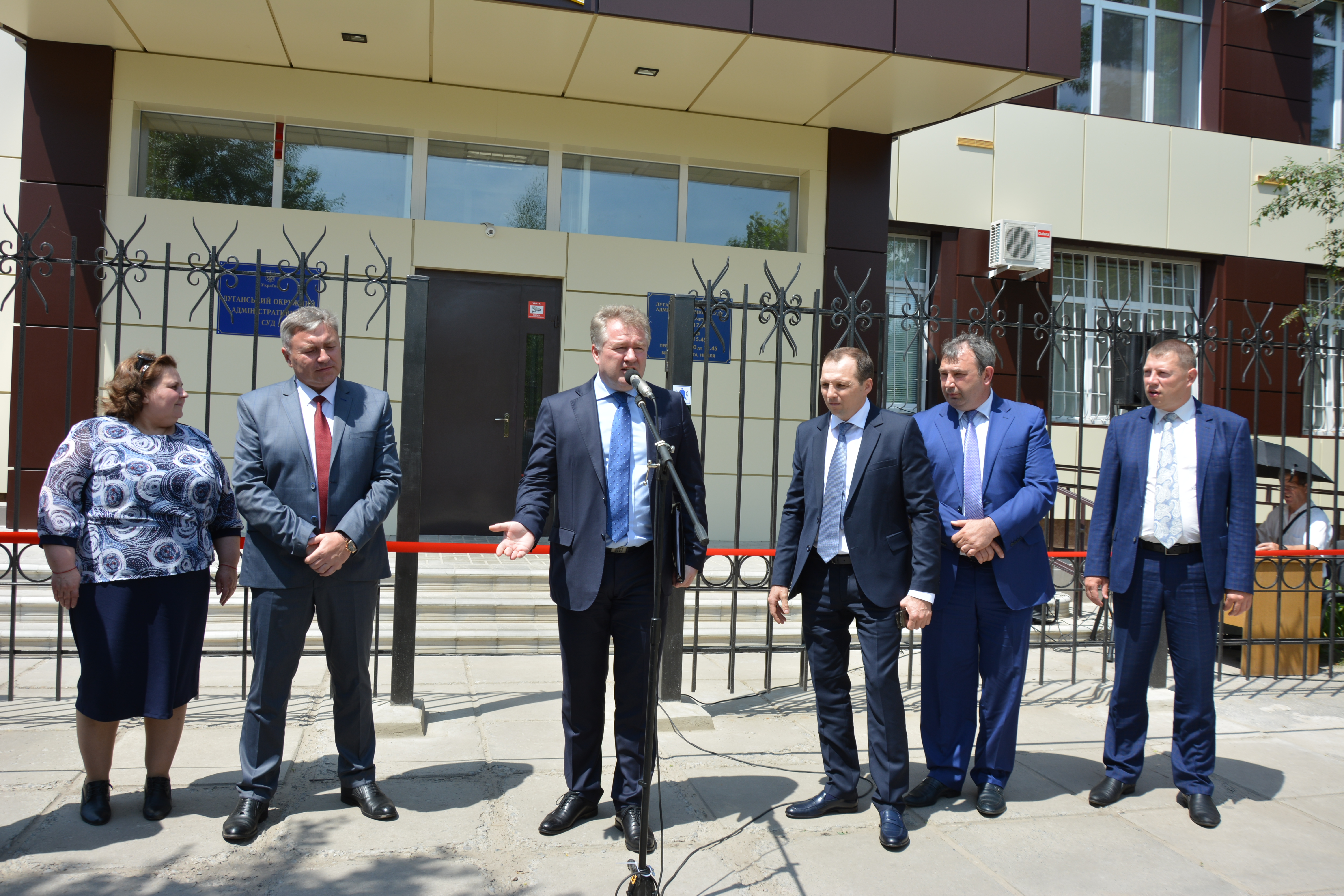 В урочистостях з нагоди відкриття взяли участь: Голова Вищої ради правосуддя Ігор Бенедисюк, заступник голови Ради суддів України Богдан Моніч, голова Вищого адміністративного суду України Олександр Нечитайло, Голова Донецького апеляційного адміністративного суду Раїса Ханова, Голова Державної судової адміністрації України Зеновій Холоднюк, голова Луганської обласної державної адміністрації-керівник обласної військово-цивільної адміністрації Юрій Гарбуз, Голова Апеляційного суду Луганської області Володимир Гаврилюк, заступник Голови Донецького апеляційного адміністративного суду Ігор Геращенко, Голова Донецького окружного адміністративного суду Вячеслав Кірієнко, начальник Територіального управління Державної судової адміністрації України в Луганській області Ігор Савенко.