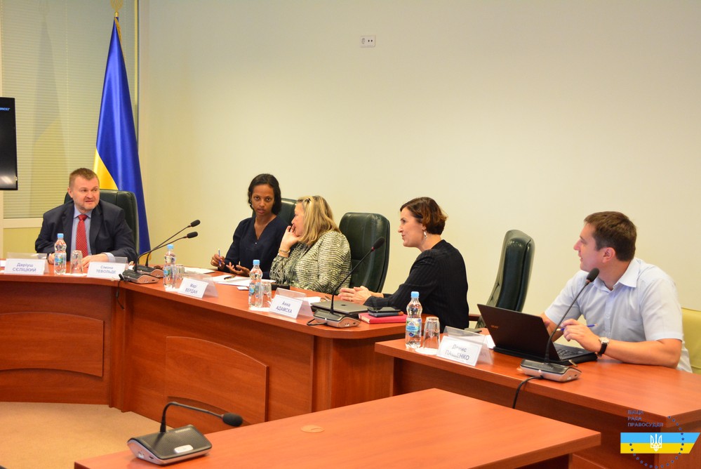Від Проекту Європейського Союзу «Підтримка реформ у сфері юстиції і правосуддя в Україні (ПРАВО-JUSTICE)» участь у зустрічі взяли головний міжнародний експерт Проекту Анна Адамська, міжнародні експерти Проекту Марі-Франсуаз Вердан та Даріуш Сєліцкий, національний експерт Проекту Денис Пащенко, перекладач Сімона Тевольде.